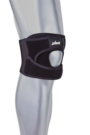 Бандаж для колена ZAMST JK-1. Поддержка и и вправление коленной чашечки средней степени компрессии. Мягкие вкладки под коленной чашечкой уменьшают давление на коленное сухожилие. Форма бандажа в виде ленты обеспечивает поддержку и стабилизацию области вокруг колена.