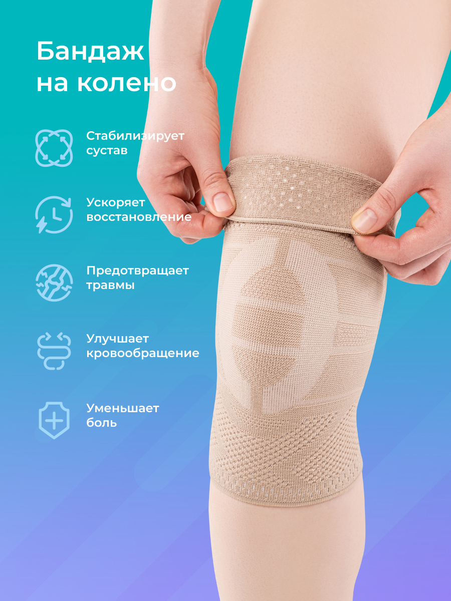 Бандаж медицинский эластичный компрессионный поддерживающий для фиксации коленного сустава.