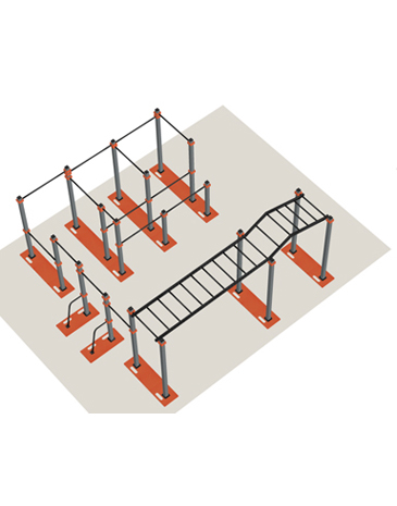 Сборно-разборная конструкция. Система металлических стоек, объединенная в единый комплекс системой турников и связующих платформ. Каркас конструкции - металлические стойки из стальной трубы с профилем 80х80 мм и толщиной стенки 4 мм. Связующие платформы служат опорой для металлических стоек. В платформах предусмотрены отверстия для их переноски.