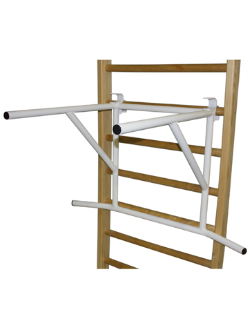 Оригинальность модели заключается в том, что для подтягиваний используется одно положение турника. Для отжиманий на брусьях – другое, перевернутое положение.