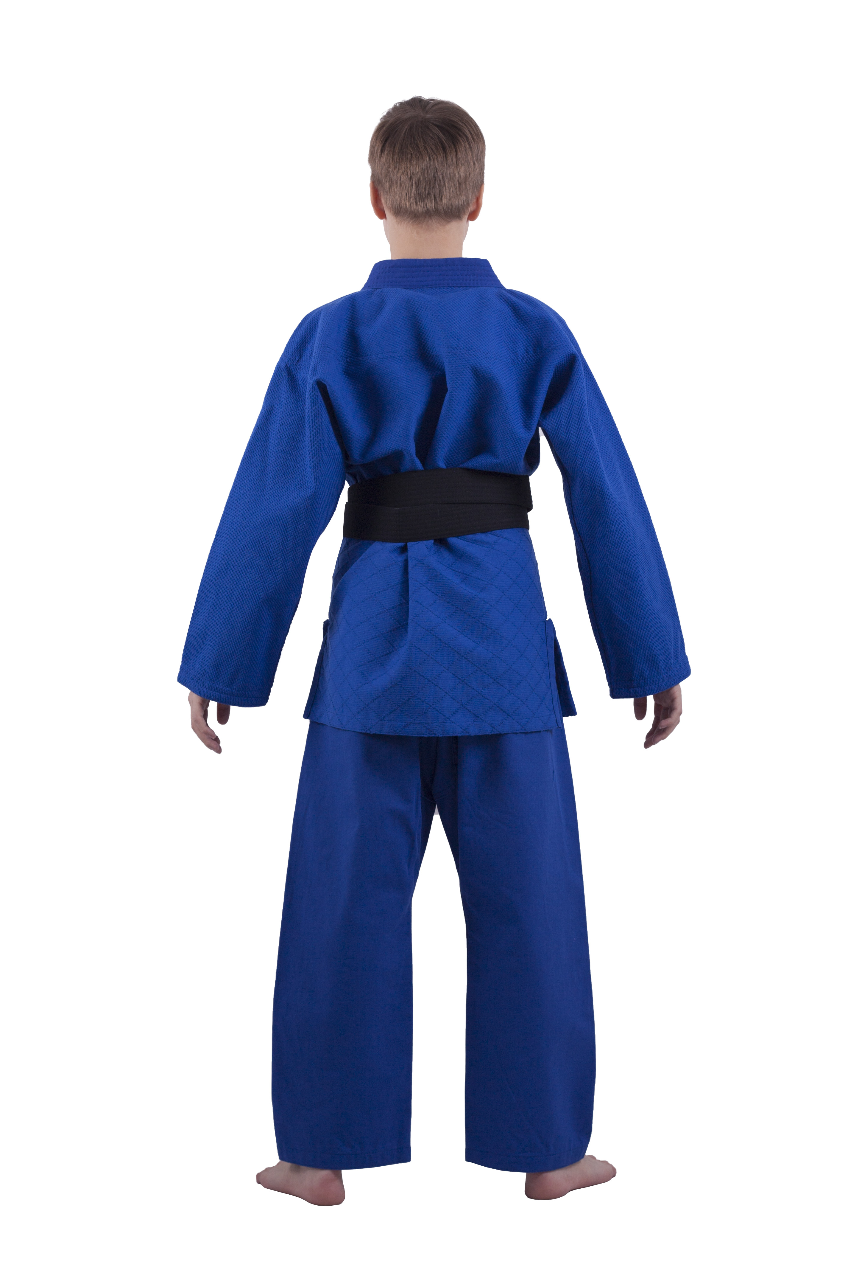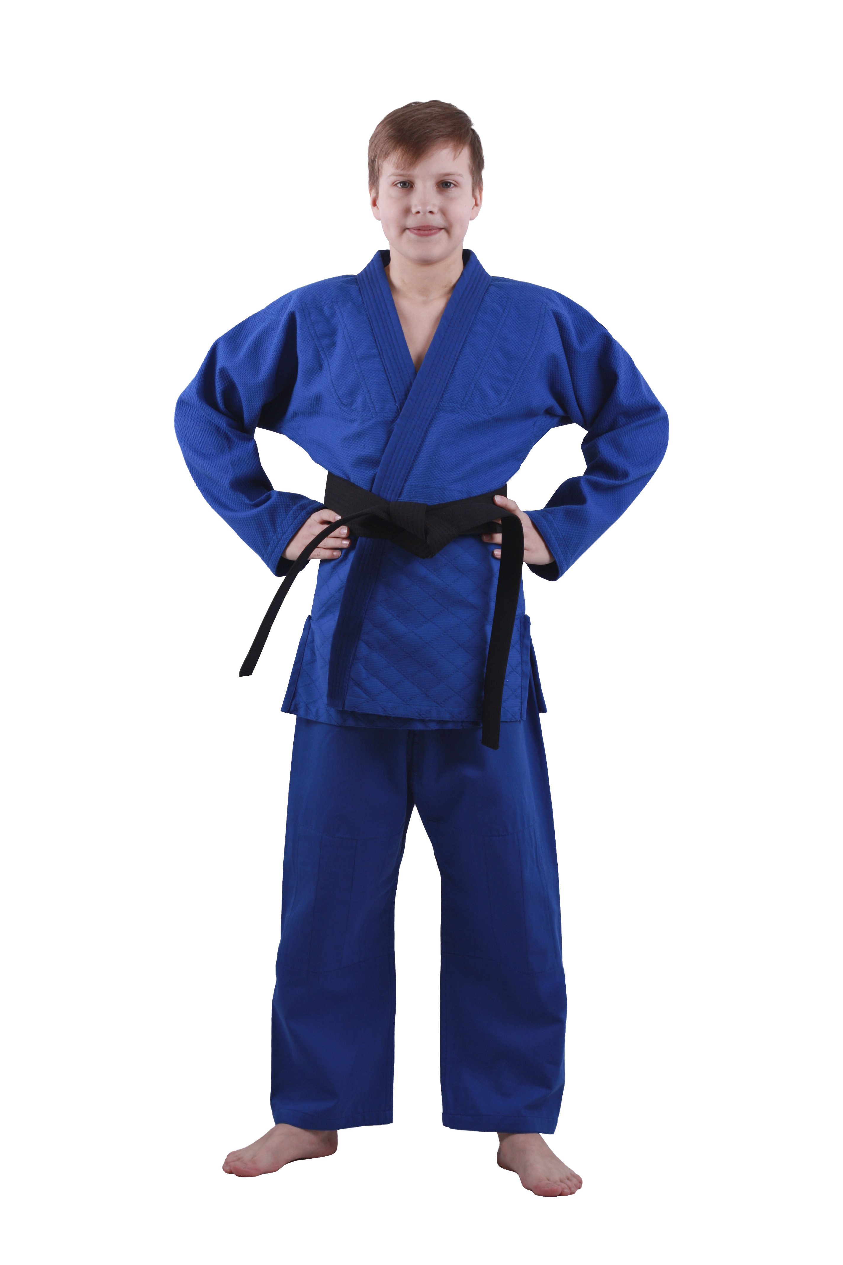 В комплект входит мягкий пояс белого цвета. Брюки с резинкой и шнурком на поясе. Коленная часть усилена дополнительной накладкой из хлопковой ткани. Подходит для начального уровня и тренировок.