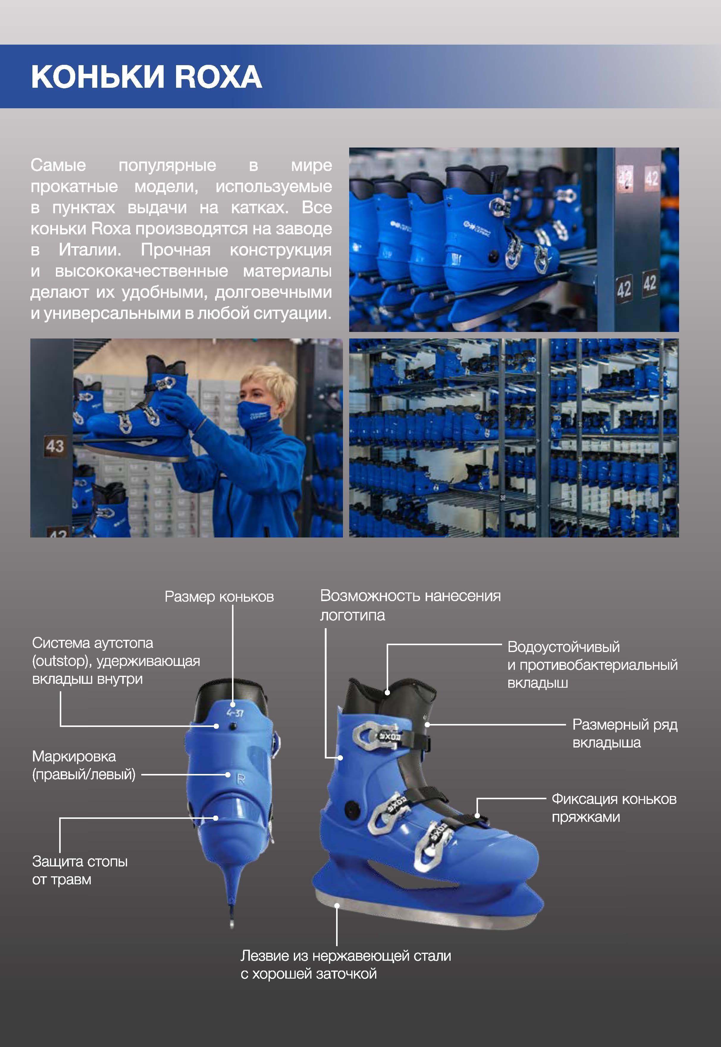 Самые популярные в мире прокатные модели, используемые в пунктах выдачи на катках. Все коньки Roxa производятся на заводе в Италии. Прочная конструкция