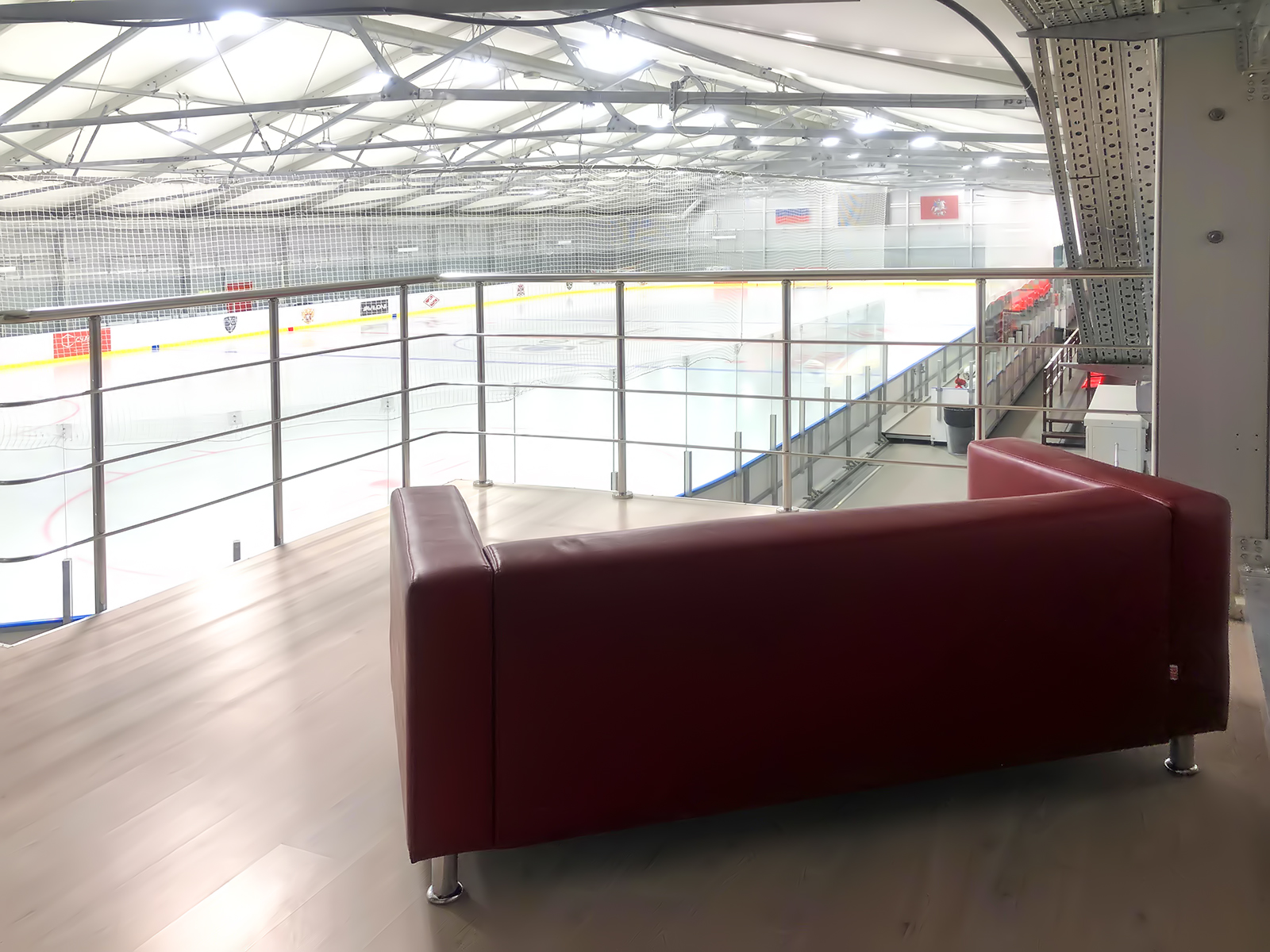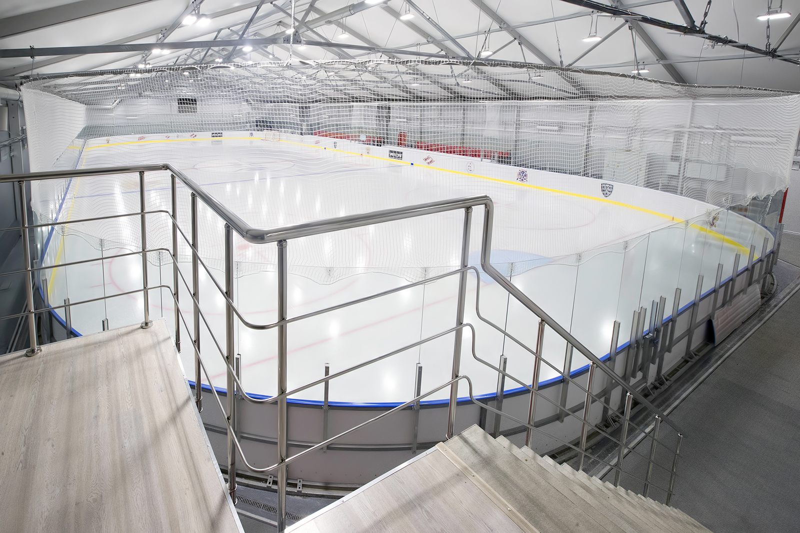 Ледовая арена включает в себя: раздевалки, душевые, туалеты, медпункт, спортивный зал, помещение для заточки коньков и зона просмотра с кафе на втором этаже, трибуны, борта, ограждения, инженерные системы, противопожарная и охранная сигнализация