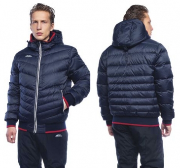 Куртка пуховая укороченная с отстегивающимся капюшоном. Капюшон регулируемый по высоте. Центральная застежка на "молнию" с внутренней ветрозащитной планкой. По бокам - два прорезных кармана, обработанные тесьмой "молнией". На груди расположен один прорезной карман.