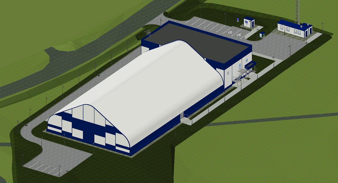 Современный спортивный комплекс с ледовой ареной 58х28 м с искусственным льдом для проведения тренировок и массового катания граждан. Применение в проекте каркасно-тентовой технологии строительства позволяют возвести сооружение в сжатые сроки с минимальными затратами.