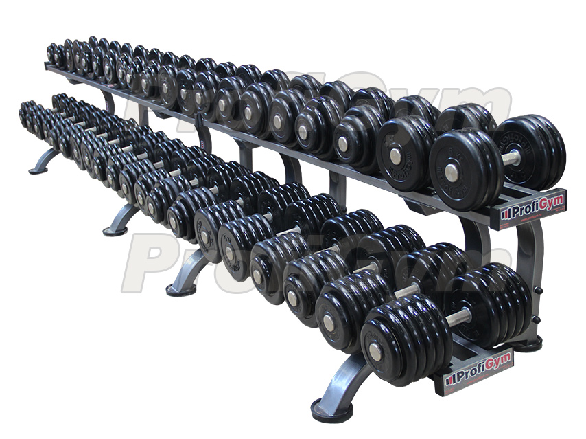 Обрезиненный гантельный ряд от 8,5 до 56 кг с шагом 2,5 кг