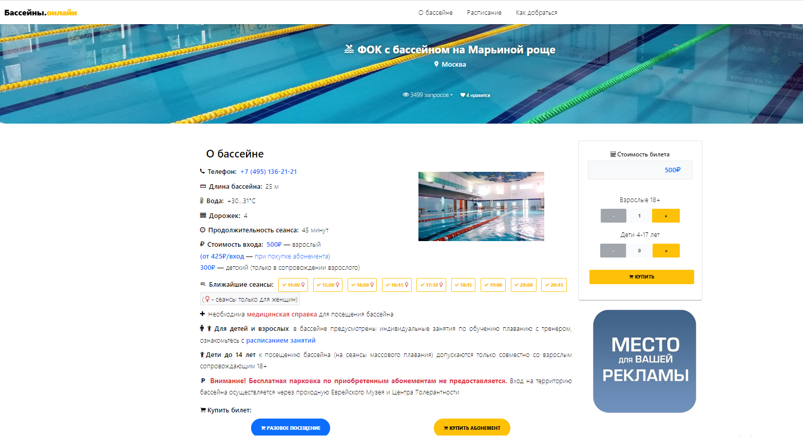 Реклама тренеру, Школе Плавания, уже представленной в конкретном бассейне. Возможность рекламировать школу плавания, услуги тренера, товары.