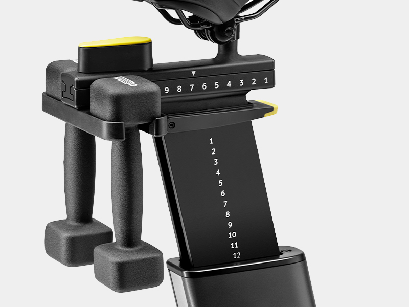 Это высокотехнологичный тренажер премиум-класса, обеспечивающий интенсивные кардиотренировки с эффектом присутствия - как на шоссейном велосипеде в реальных условиях. Отличительные особенности модели: HD-экран с доступом к интерактивным занятиям, точное измерение мощности, бесшумная магнитную систему нагрузки, эргономичная регулировку и возможность тренировать верхнюю часть тела с помощью пары дополнительных гантелей с нескользящим резиновым покрытием по 1.5 или 2.5 кг.
