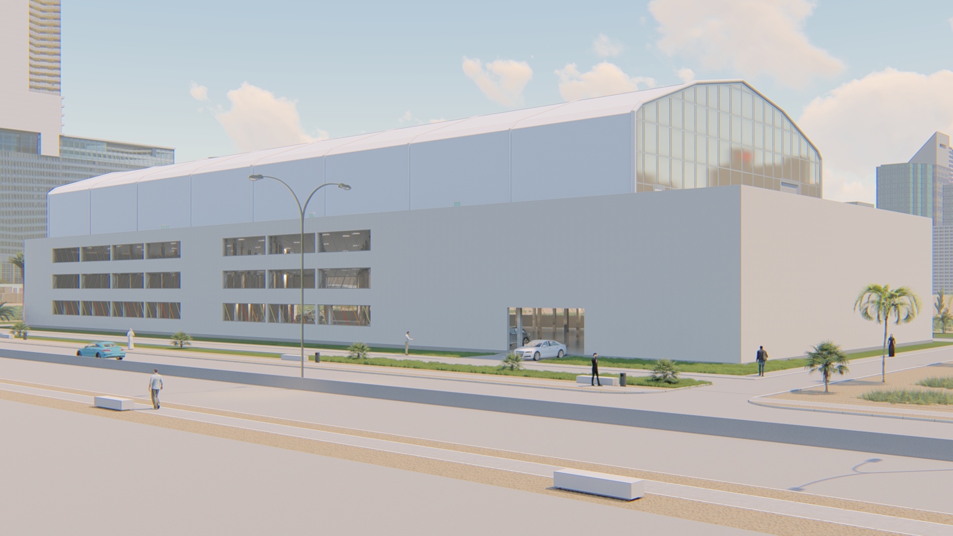 Спортпаркинг - многоуровневый паркинг в жилом районе со спортивным центром на крыше позволяет разместить просторный