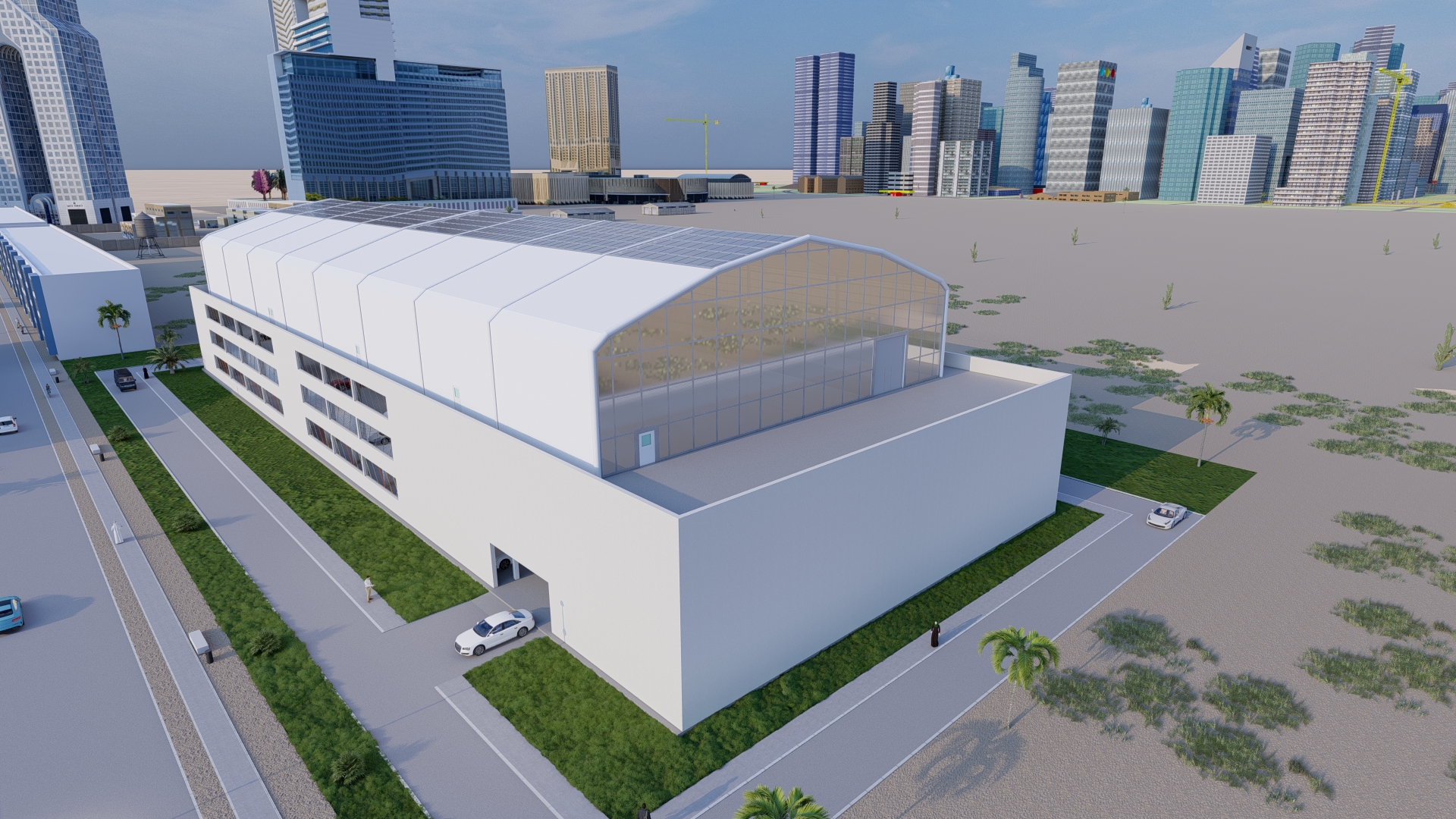 - Проект разрабатывался индивидуально на основе легких металлоконструкций с использованием технологии «Гибкий сэндвич», запатентованной ГК «Эвриал».