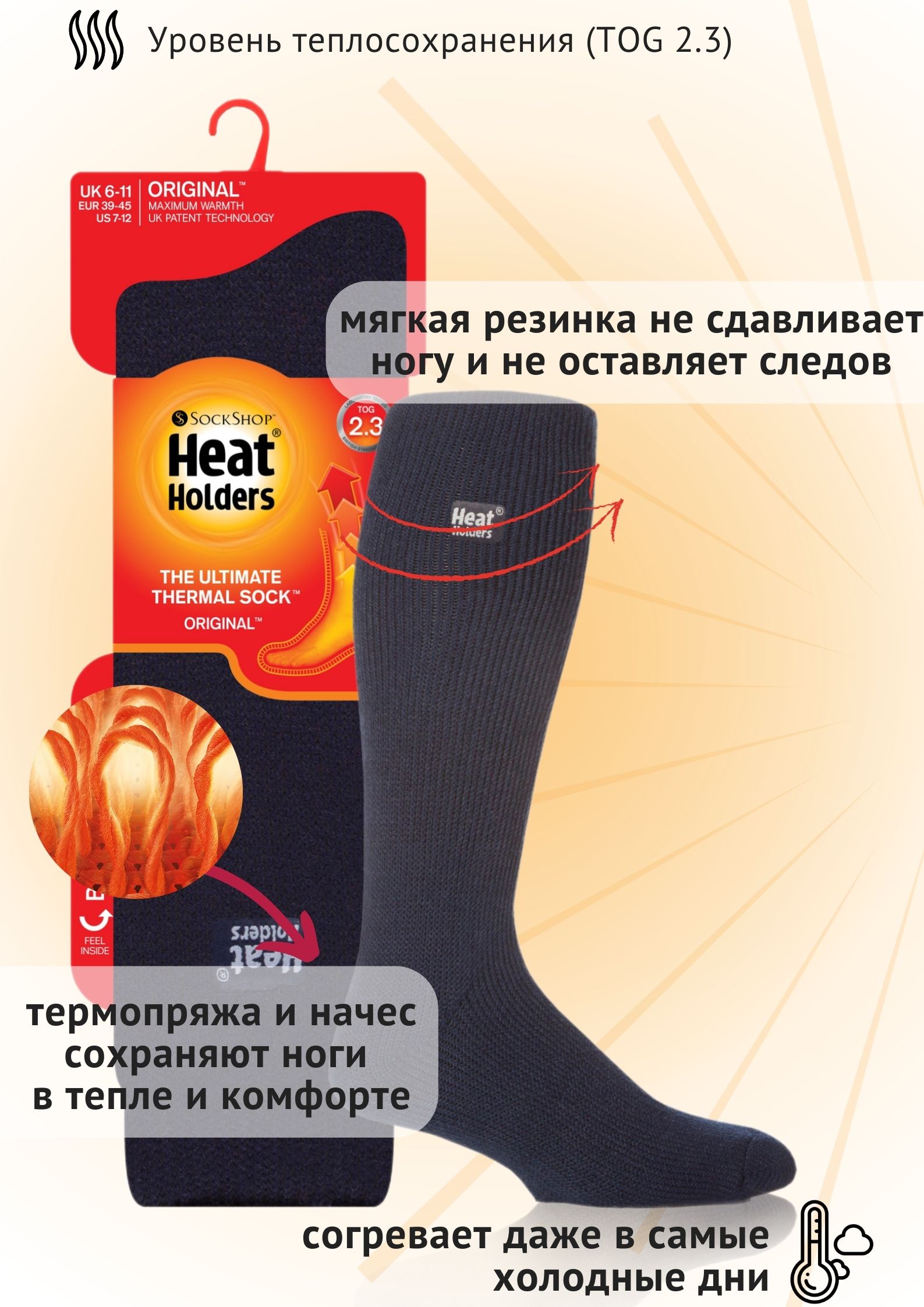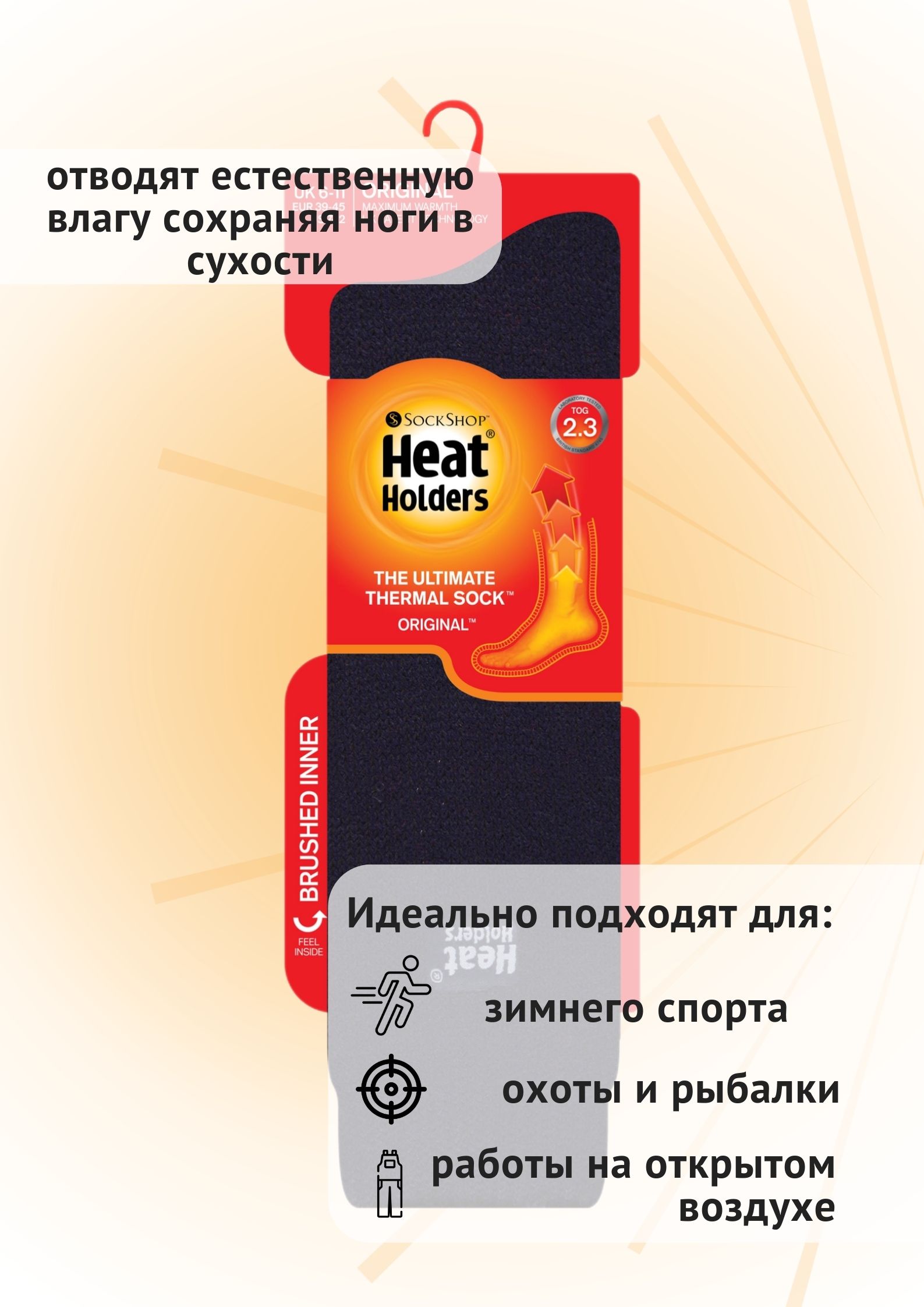 Мужские носки Heat Holders Long - это удлиненный вариант классической модели ORIGINAL. В модели Long используется теплоизоляционная пряжа высшего качества. Мягкий начес с изнаночной стороны увеличивает воздушную прослойку между носком и ногой, обеспечивая тепло в холодные дни. Термо-пряжа отводит излишнюю влагу, сохраняя сухость и комфорт в течение всего дня. Идеально подходят для дома, охоты, рыбалки, для ношения со специальной обувью и суровых условий работы
