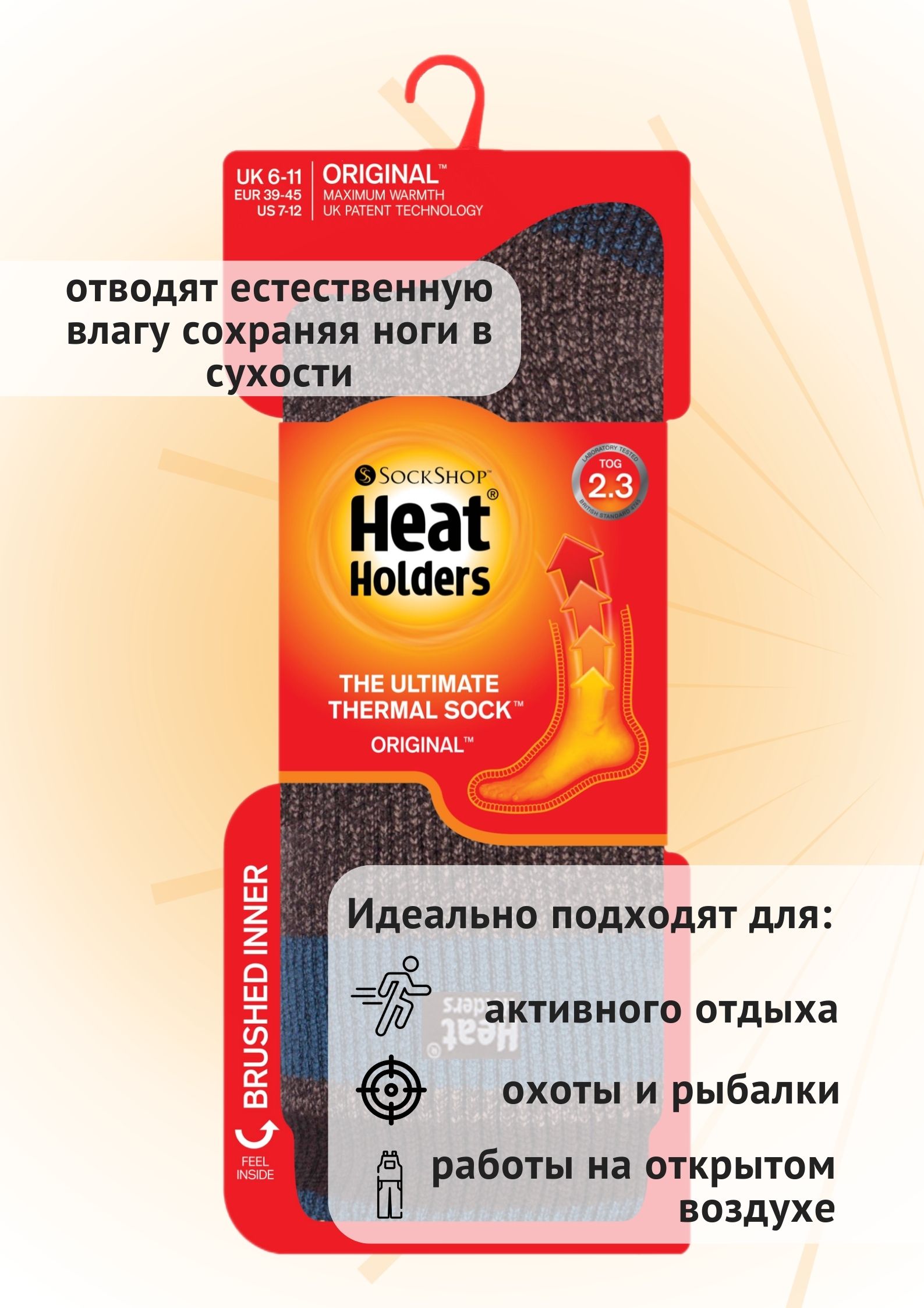 Мужские полосатые носки Heat Holders Twist! В модели Twist используется теплоизоляционная меланжевая пряжа высшего качества. Мягкий начес с изнаночной стороны увеличивает воздушную прослойку между носком и ногой, обеспечивая тепло в холодные дни. Термо-пряжа отводит излишнюю влагу, сохраняя сухость и комфорт . Идеально подходят для дома, охоты, рыбалки, для ношения со специальной обувью и суровых условий работы.