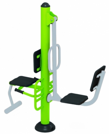 С одной стороны пользователь, поместив ступни ног за штангу, разгибает ноги в коленях, поднимая штангу. С другой стороны пользователь, сидя на сиденье, согнуты ми в коленях ногами упирается в подножки и из исходного положения полностью разгибает ноги в коленях, затем возвращается в исходное положение.