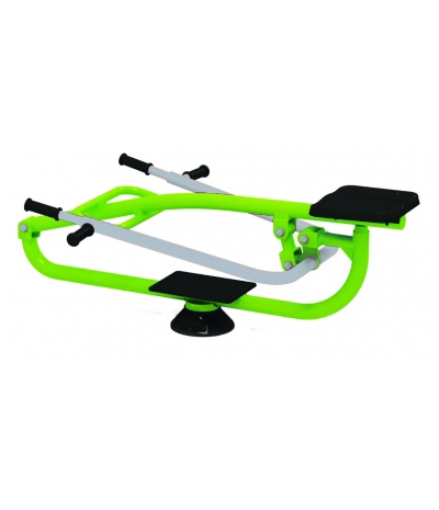 Сидя на сиденье, согнутыми в коленях ногами пользователь упирается в подножки, руками держится за рукоятки и осуществляет движения, имитирующие греблю.
