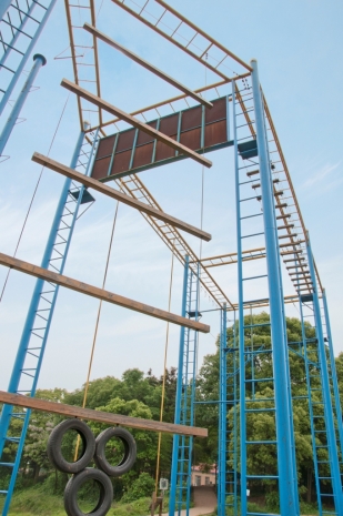 При отсутствии деревьев веревочный парк строится на искусственных опорах, на каркасе из деревянного бруса или стальных труб.