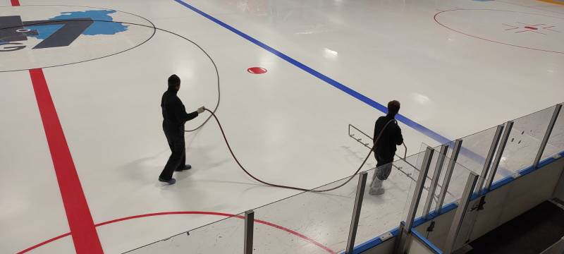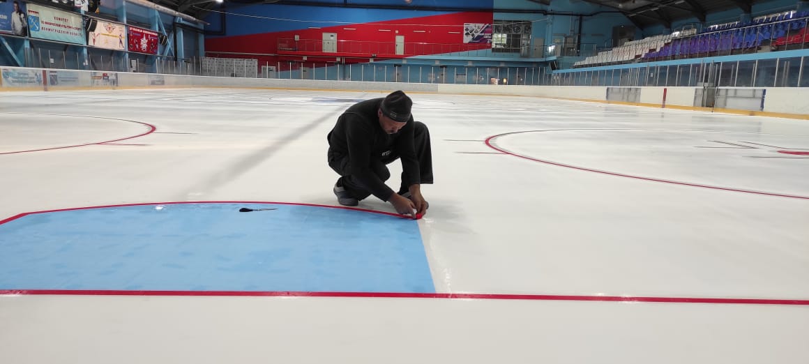 Заливка, покраска льда на Ледовых аренах, нанесение разметки