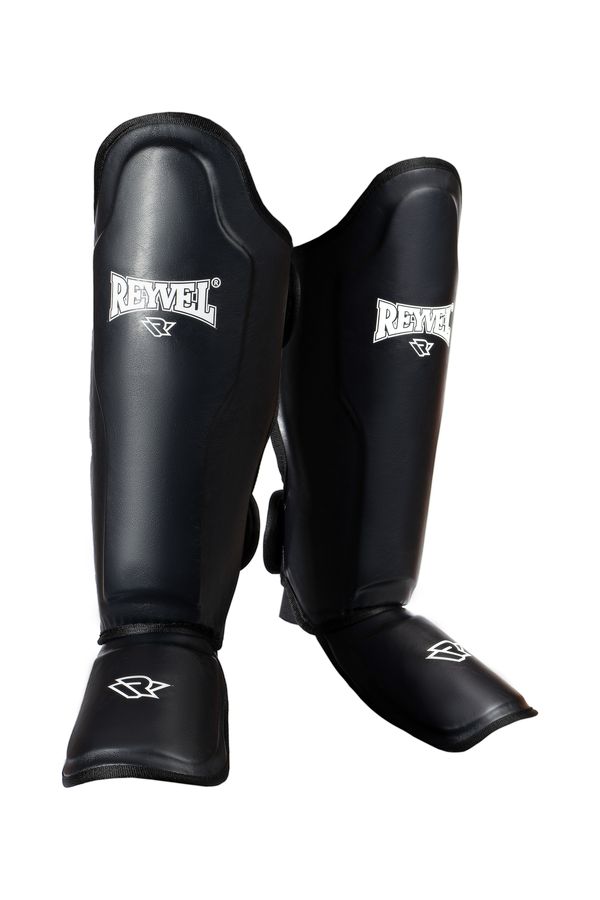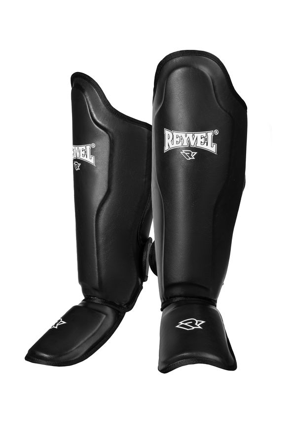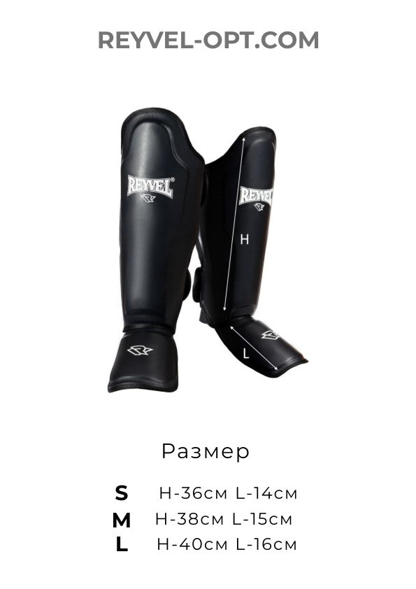 Внешний материал – ударопрочный винил, подкладка выполнена из прочной быстросохнущей ткани. Крепится на ноге двумя широкими застежками на липучке, расположение застежек обеспечивает плотное прилегание и исключает проворачивание во время тренировки, стопа и пятка фиксируются прочными резинками. Защиту голени и стопы обеспечивает трехслойный вкладыш из полимерной пены