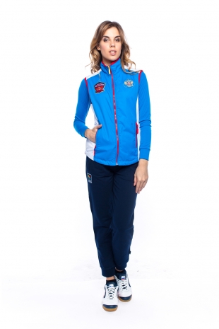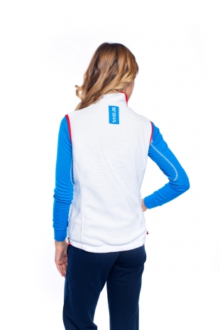 Жилет двусторонний с центральной застежкой на молнию, с рельефами. Боковые карманы на молнии. Проймы окантованы тесьмой. Ширина по низу регулируется при помощи эластичного шнура и фиксаторов.