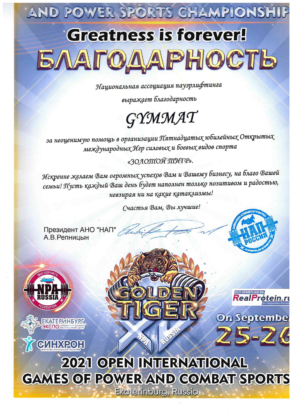 У бывших спортсменов, мастера спорта Геннадия Жмулиан и Евгения Левковеца , в 2018 году, и возникла идея открыть производство спортивного оборудования. Сначала планировали изготавливать только спортивные маты и зоны приземления, но спрос подталкивал расширять ассортимент. Сейчас компания Gymmat производит гимнастические модули, борцовские ковры, ролл-маты, татами, гимнастические дорожки, боксерские груши, спортивные канаты и навесные турники.
