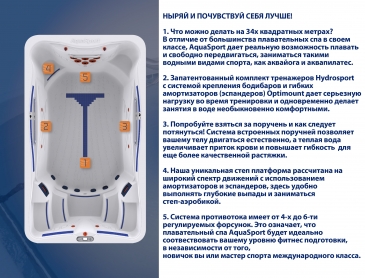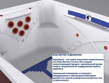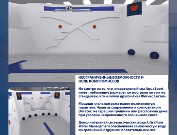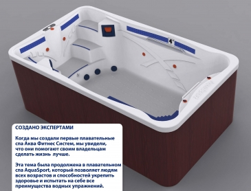 Компактный гибрид плавательного бассейна и акватренажера.  Может встраиваться или стоять на поверхности. Отлично выдерживает русскую зиму. Размеры позволяют идеально вписать в террасу возле бани.