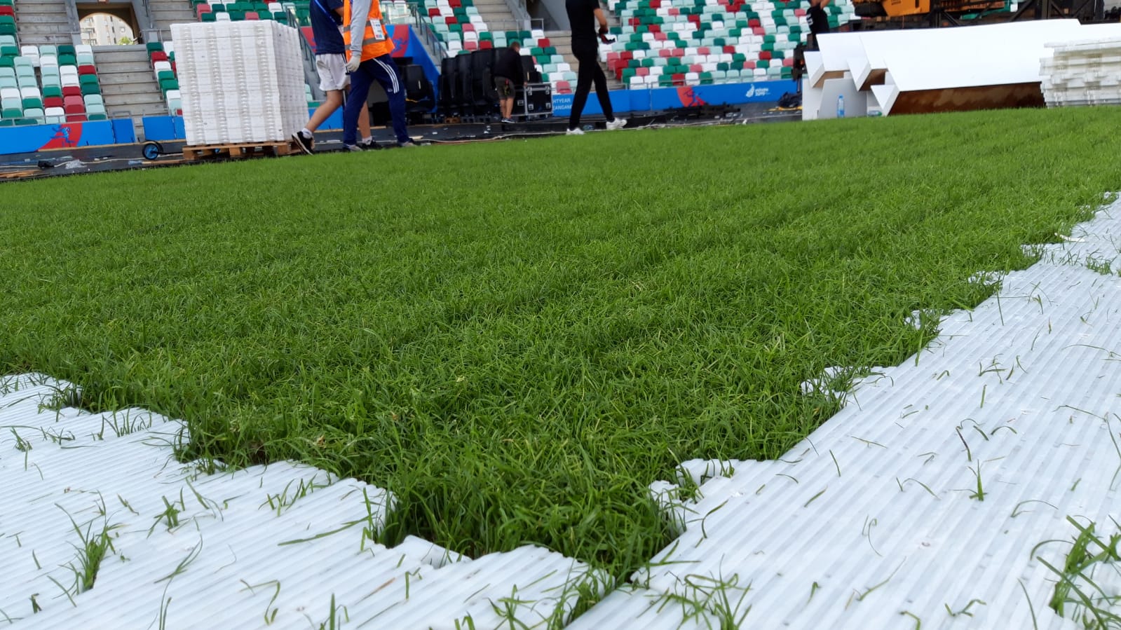 Аренда защитного покрытия для газона Экотек Арена при проведении массовых мероприятий (концертов, выставок, фестивалей и т.д.) на стадионах, в парках, закрытых помещениях, где необходимо защитить основание от повреждений. Предлагаются сопутствующие услуги по доставке-вывозу покрытия и шеф-монтажу. В короткие сроки площадка готова к проведению мероприятия и последующему продолжению основного процесса использования.