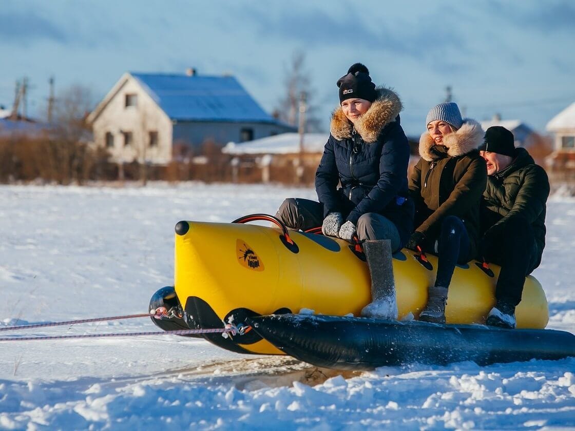 Компания TimeTrial предлагает купить большие санки "Банан" на 12 человек для катания за снегоходом и с горки. Мы осуществляем доставку по Санкт-Петербургу, Москве и всей России.