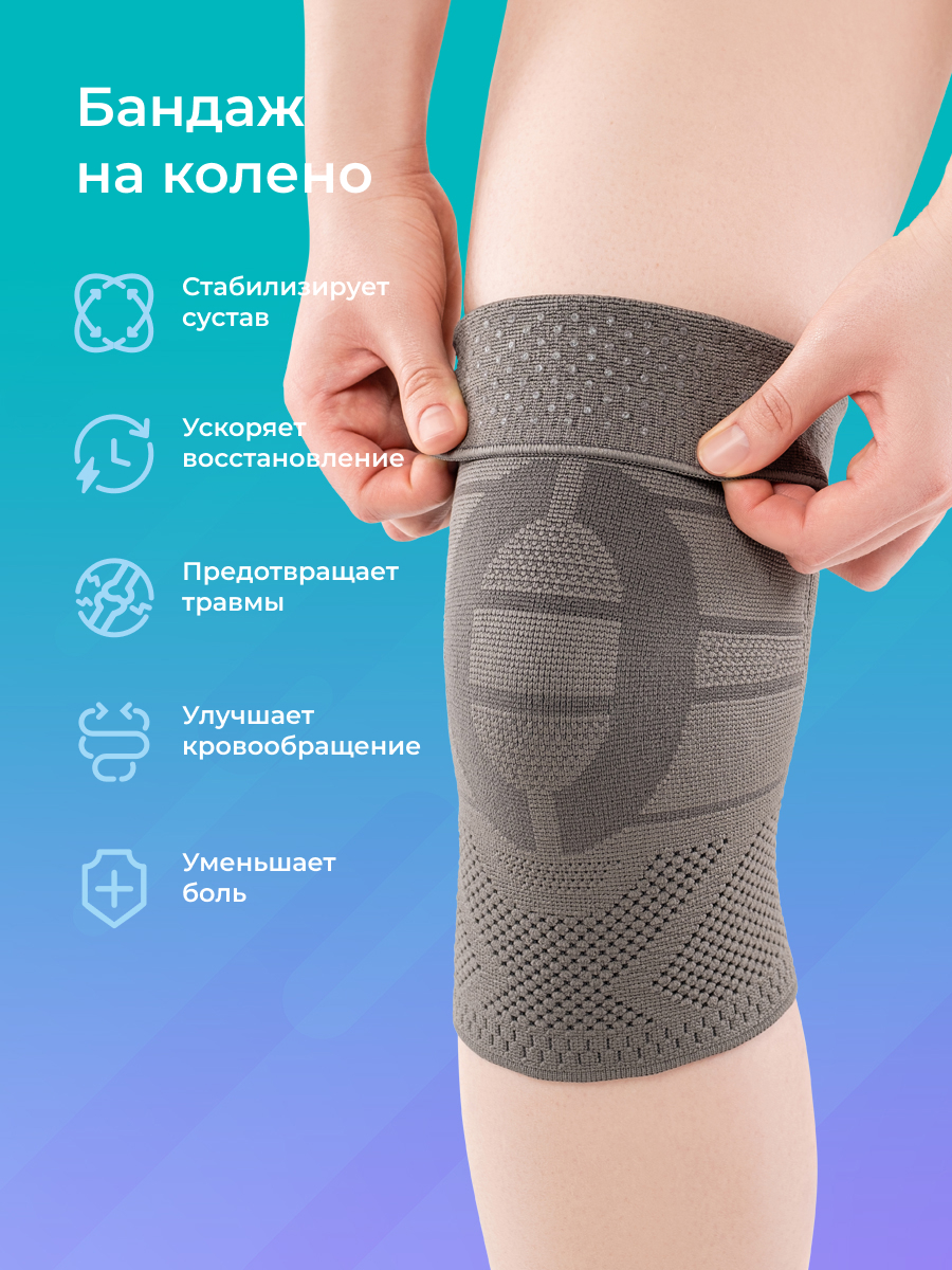 Бандаж медицинский эластичный компрессионный поддерживающий для фиксации коленного сустава.