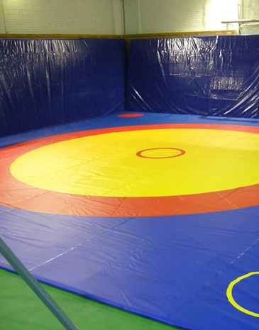 Ковер для борьбы 12х12м, состоит из 72 матов ПВВ и трехцветной покрышки из импортного ПВХ.