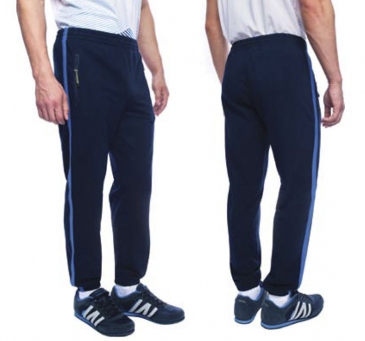 Брюки из трикотажного футерованного полотна с боковыми карманами на молнии, пояс с эластичной тесьмой, регулируемый шнуром.