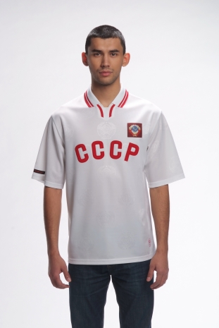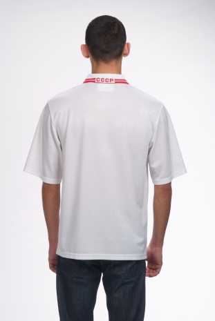 Классическая футболка "СССР" простого кроя с отложным трикотажным воротником советского образца изготовлена из текстурированной ткани (жакк арда) с узором герба СССР. Легкий материал с мягким мерцанием произведен на одной из ведущих фабрик в Италии. Футболка дышит, подобно второй коже, прекрасно впитывает влагу и предотвращает перегрев даже при интенсивных физических нагрузках.