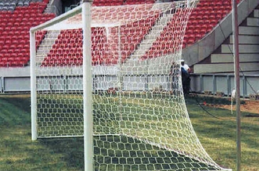 Профессиональные футбольные ворота 7,32х2,44 м, алюминиевые, профиль - овал 10х12 см,  белые, стационарные, сборно-разборные, в комплекте со стаканами для установки и растяжками (пара).