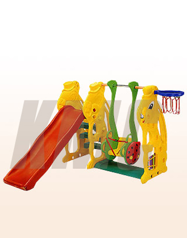 Комплектация: пластиковая горка, лесенка, кольцо баскетбольное, качели.