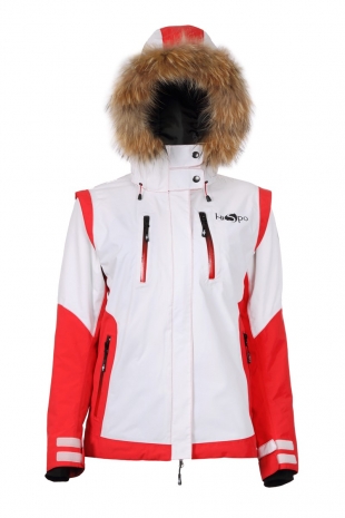 Горнолыжная куртка. Мембранная ткань со спандексом обеспечивает большую свободу движений и безопасность, чем неэластичная. Характеристики мембраны (водонепроницаемость/паропроницаемость) 15000/15000. Изделие имеет 4 внешних кармана, карман для ски-пасс, внутренний карман для мобильного телефона, салфетка для протирки очков. Вентиляция и внешние карманы с водонепроницаемыми молниями. Цвет молний градуированный (плавно переходящий от одного цвета к другому), что является дизайнерской разработкой Hi-Spo и добавляет этой высокотехнологичной и, в то же время, нарядной и модной куртке дополнительную эстетическую привлекательность. Съемные снеговая юбка и утепленный штормовой капюшон. Отделка капюшона - натуральный мех лисы (также съемный). Встроенные эластичные манжеты с прорезями для пальца. Ширина внешних манжетов регулируется. Утеплитель Dupont Comformax Premium - легкий, теплый, с водоотталкивающей пропиткой. Молнии YKK.