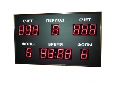 Универсальное спортивное табло для помещения. Отображает игровое время, счет, период, фолы.