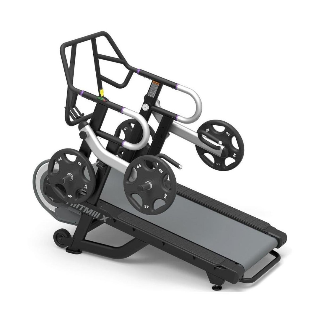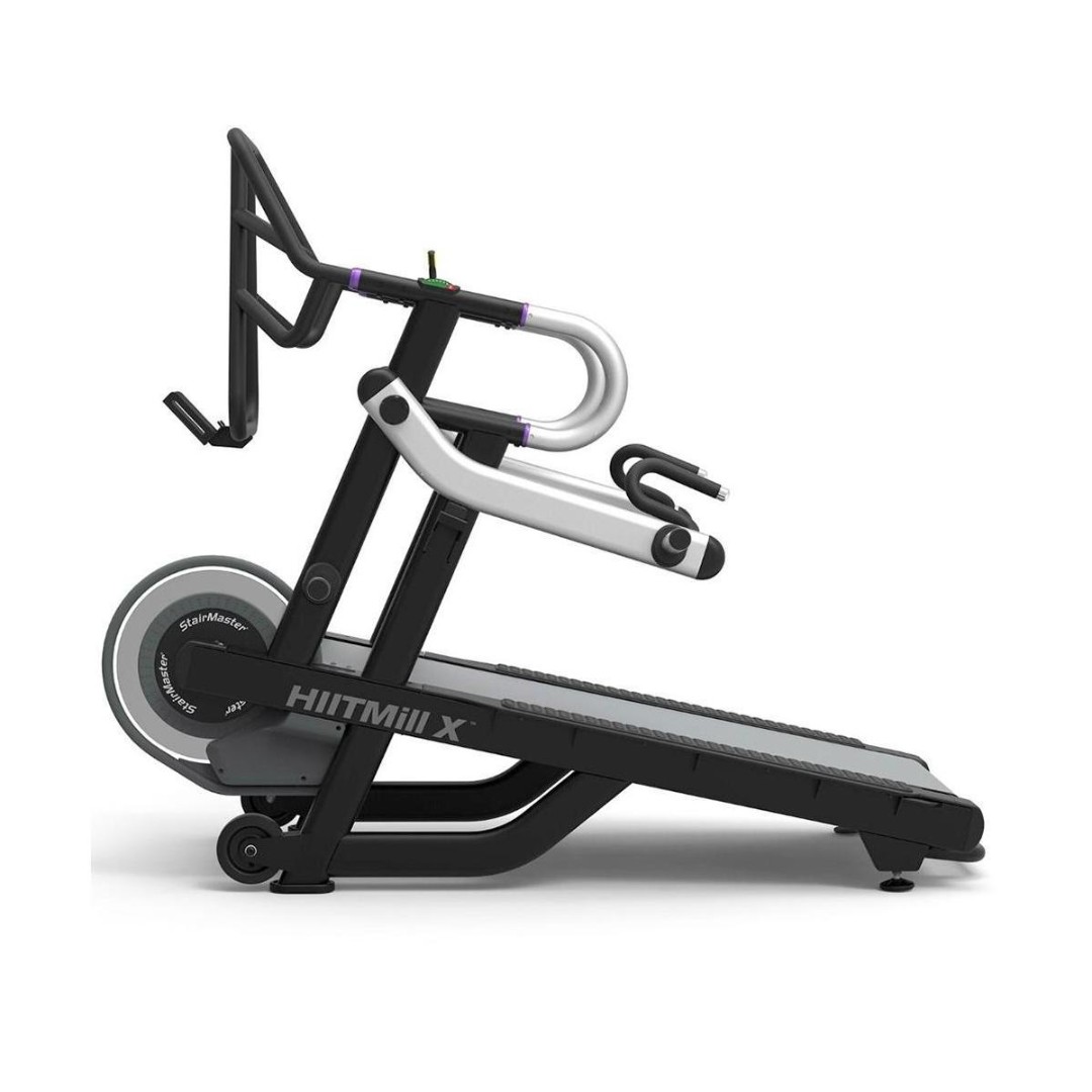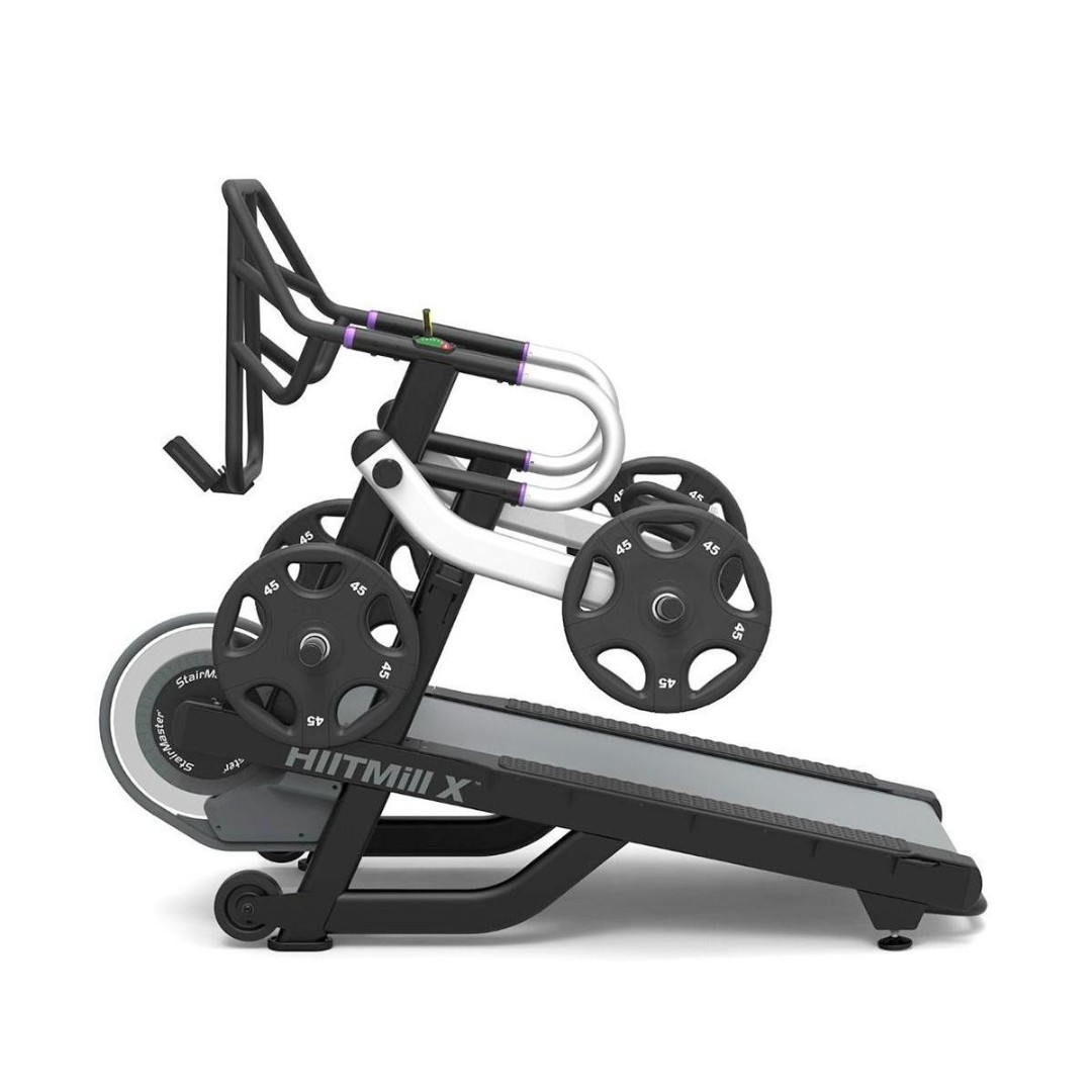Беговая дорожка HIITMILL– революционное решение от StairMaster. Эта профессиональная модель сочетает в себе силовые и кардионагрузки — спортсмен перемещается по беговому полотну, удерживая рычаги с дисками. В тренировку одновременно вовлекаются мышцы ног, пресса и спины.
