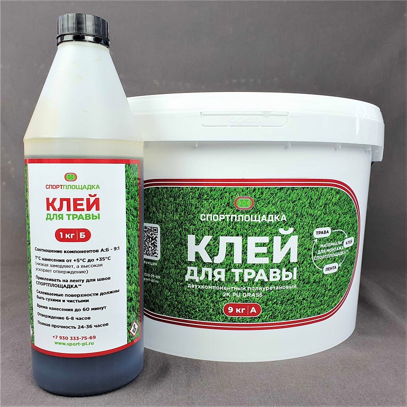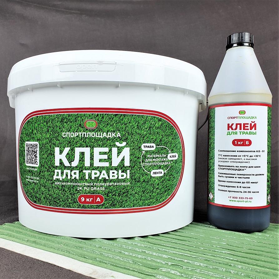 Назначение клея - использование при монтаже покрытий футбольных полей, теннисных кортов и многофункциональных площадок из искусственной травы. Температура применения от 5°до 35°С.