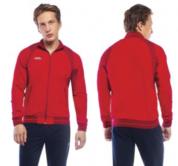 Куртка из трикотажного полотна с центральной застежкой на тесьму «молнию» с контрастными вставками и воротником-стойкой. Рукава покроя полуреглан. Боковые карманы обработаны тесьмой - «молнией». Воротник, манжеты, пояс из трикотажного полотна.