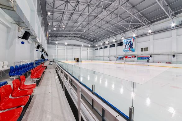 - Удобные раздевалки, сауна, заточка коньков, аренда коньков, зал ОФП, стирка формы, хостел, паркинг