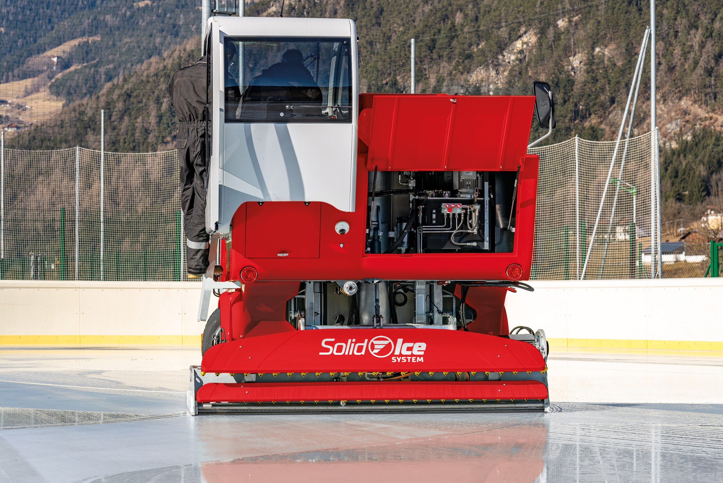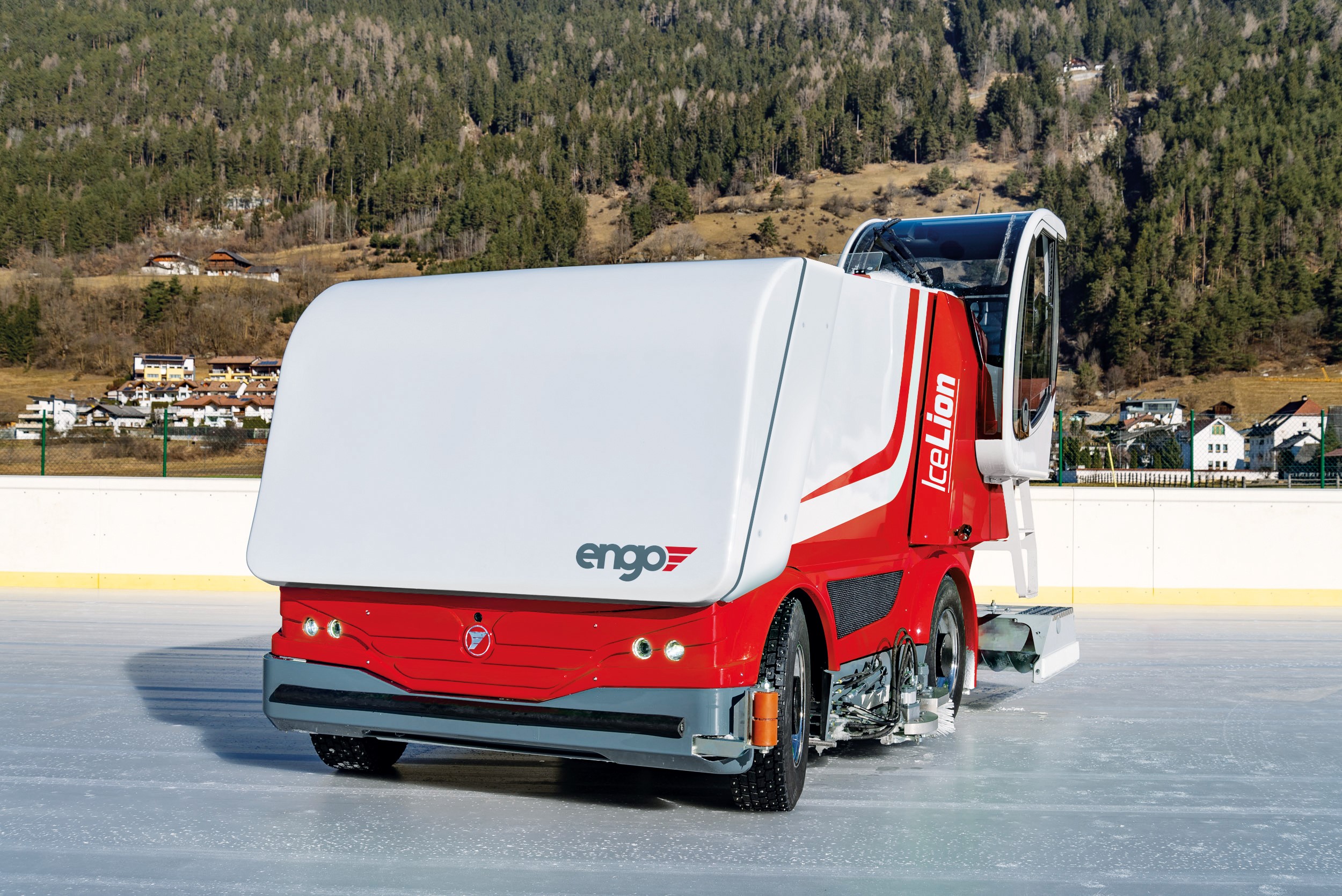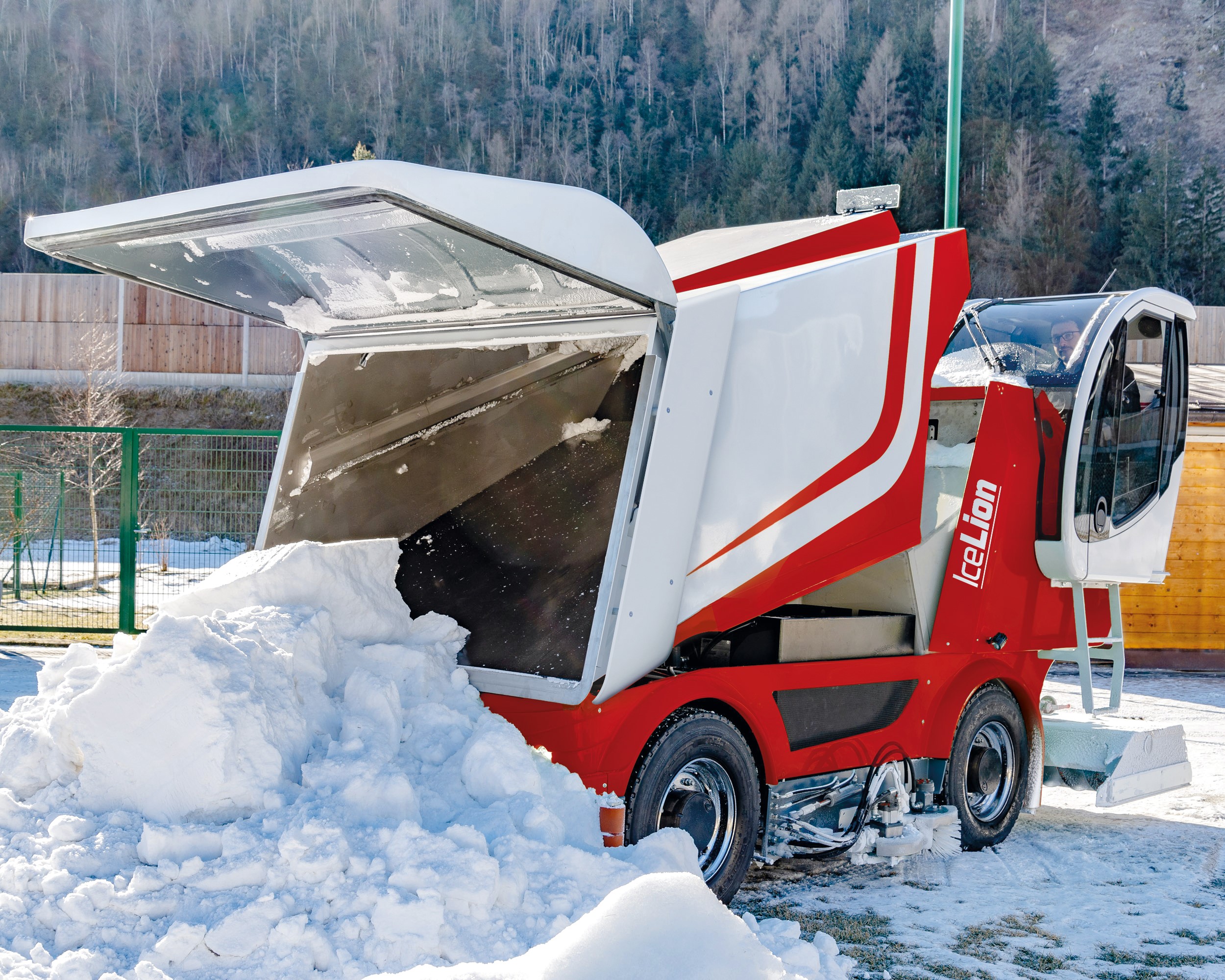 Обладая большой вместимостью, 5 м³ снега и до 2000 литров воды, Ice Lion является идеальной машиной для ледяных полей с площадью до 7 000 м². Мощные аккумуляторы и широкий нож (2500 мм) позволяют Ice Lion обрабатывать самые большие ледовые катки. Несмотря на большие размеры, он быстр и манёвреннен.  Простое управление с помощью джойстика и сенсорного дисплея обеспечивает особый комфорт во время вождения.