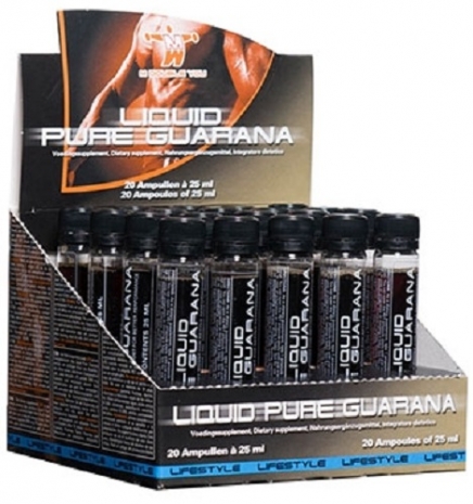 Liquid Pure Guarana является жидкой пищевой добавкой, придающей энергию, а также увеличивающей физическую активность. Liquid Pure Guarana расшифровывается как Гуарана в жидком виде без примесей», в каждой ампуле содержится 2000 мг гуараны. Liquid Pure Guarana стимулирует процесс окисления жирных кислот и ускоряет переваривание углеводов. Liquid Pure Guarana — это выход в ситуациях, когда вы жаждете энергии!