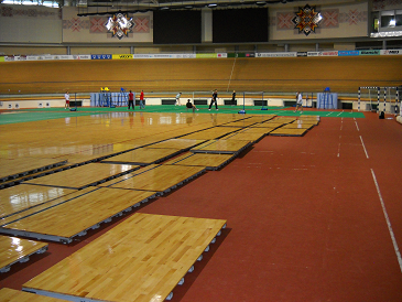 Готовые панели 1000 мм х 2000 мм и панели 1000 мм х 1000 мм. По бокам панелей расположены уникальные стальные элементы крепления: шипы, пазы. Основу панели составляет двухслойное OSB толщиной 12 мм, деревянные лаги из мягких хвойных пород дерева толщиной 40 мм с амортизаторами толщиной 11 мм. На лаги укладывается готовая паркетная доска толщиной 20 мм, изготовленная из массива клена, подготовленная в заводских условиях для дальнейшей лакировки на объекте.