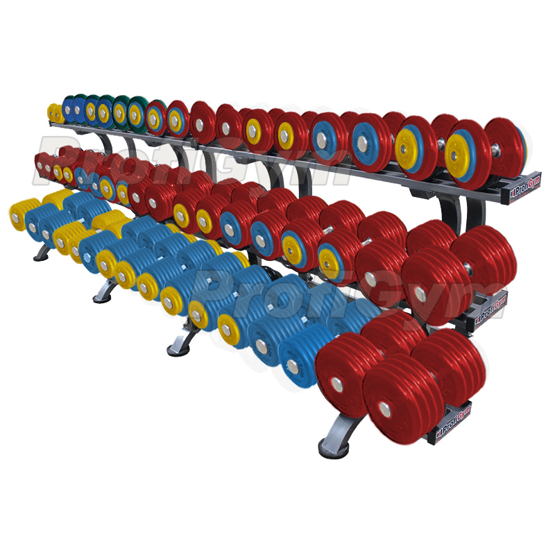 Обрезиненный цветной гантельный ряд от 11 до 71 кг с шагом 2,5 кг