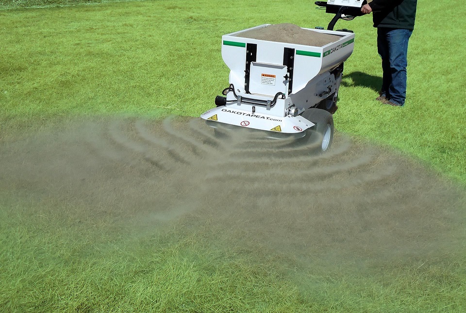 Dakota 310 — это компактный и очень маневренный ручной пескователь с двойной центрифугой. Разброс шириной 6 метров можно точно изменять с помощью отдельных ручных органов управления на руле. Прочная конструкция Dakota 310 и простота использования делают эту машину идеальной для разбрасывания песка, резиновой крошки и других подсыпочных материалов на спортивных покрытиях, где доступ для других моделей Dakota ограничен.