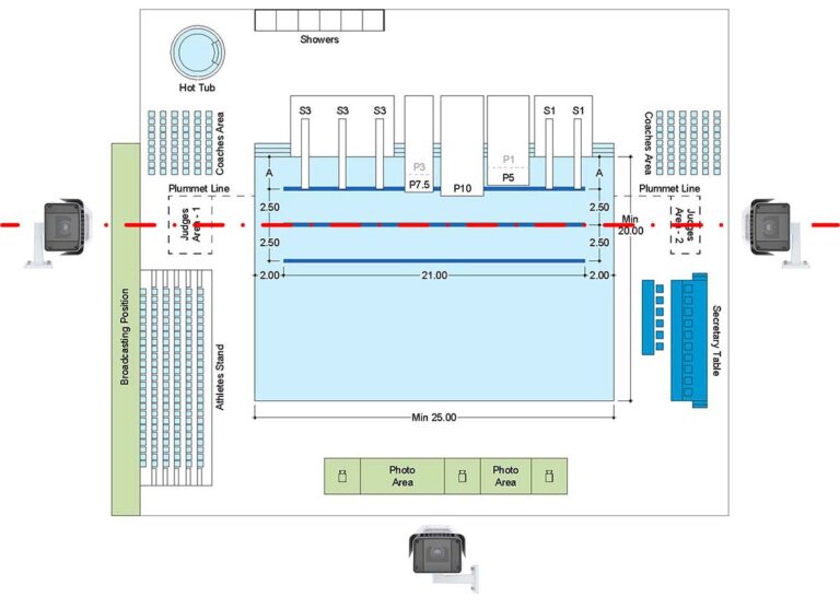 - Возможно расположение дополнительных камер: вид на трамплины, вид на вышки и вид со стороны пресс-служб.