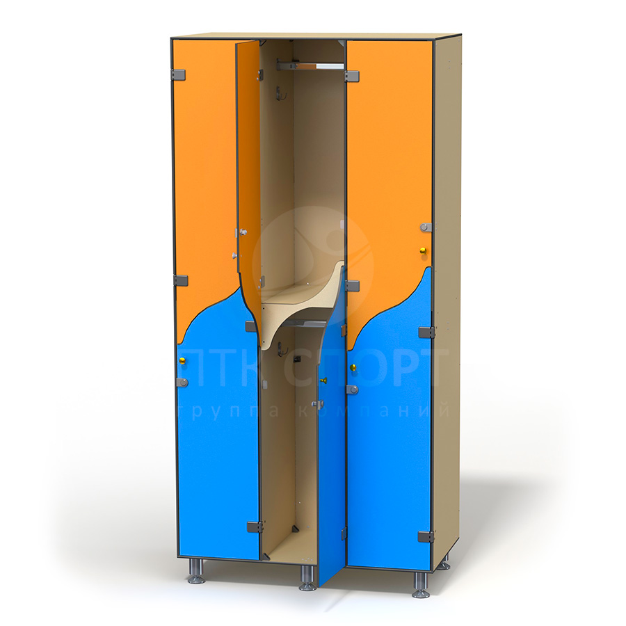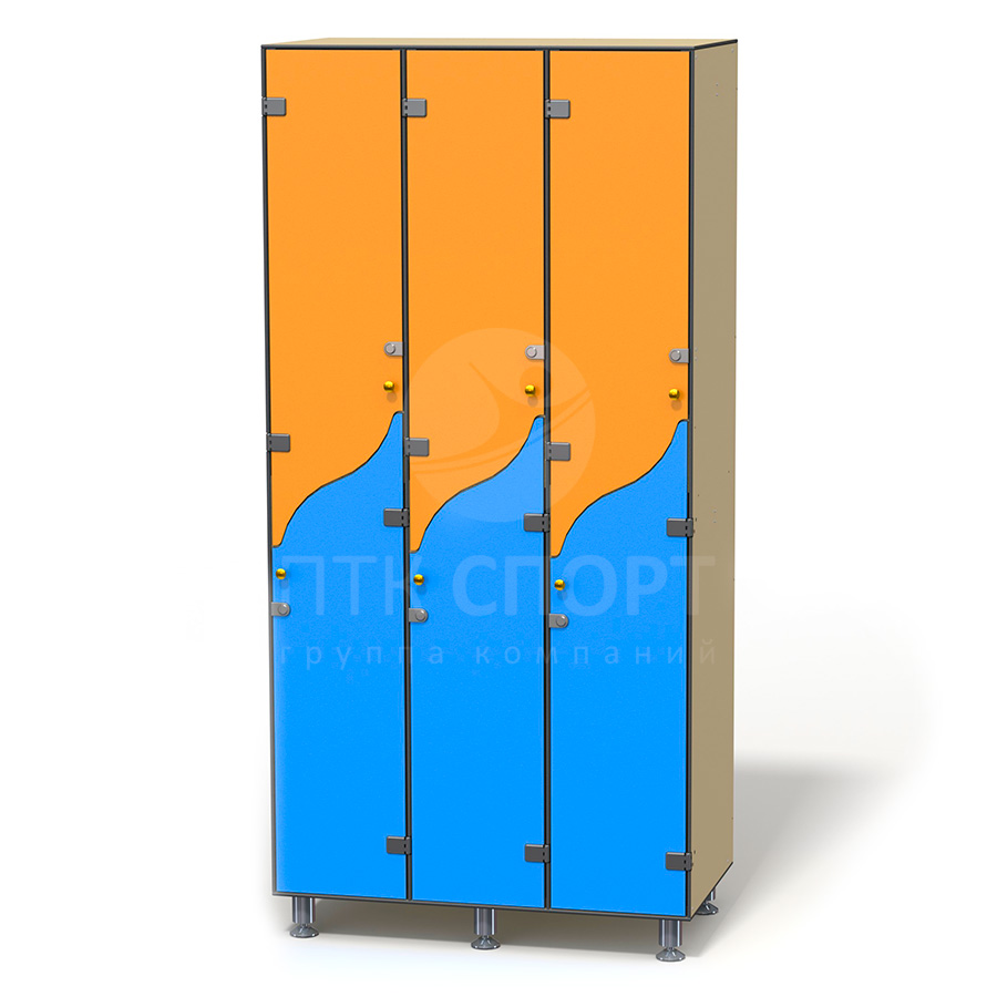 Шкаф трехсекционный двухъярусный (шесть ячеек) для спортивных раздевалок