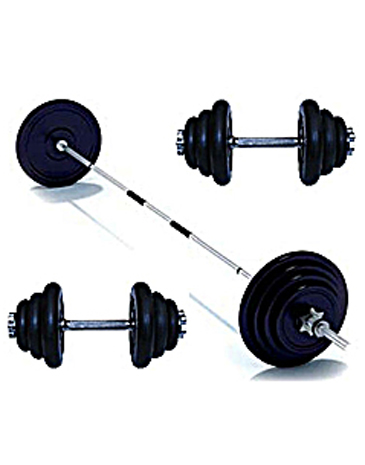 Сборно-разборная, возможна комплектация различным набором дисков. 2 грифа для гантелей в комплекте. Возможная длина грифов: 1,25 м; 1,5 м; 1,8 м; 2 м; 2,2 м.