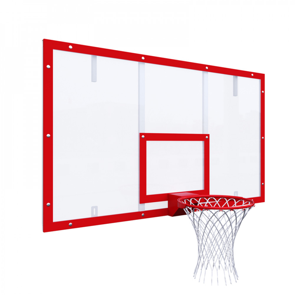 Щит баскетбольный игровой 1800х1050 на раме ОРГСТЕКЛО цвет разметки КРАСНЫЙ