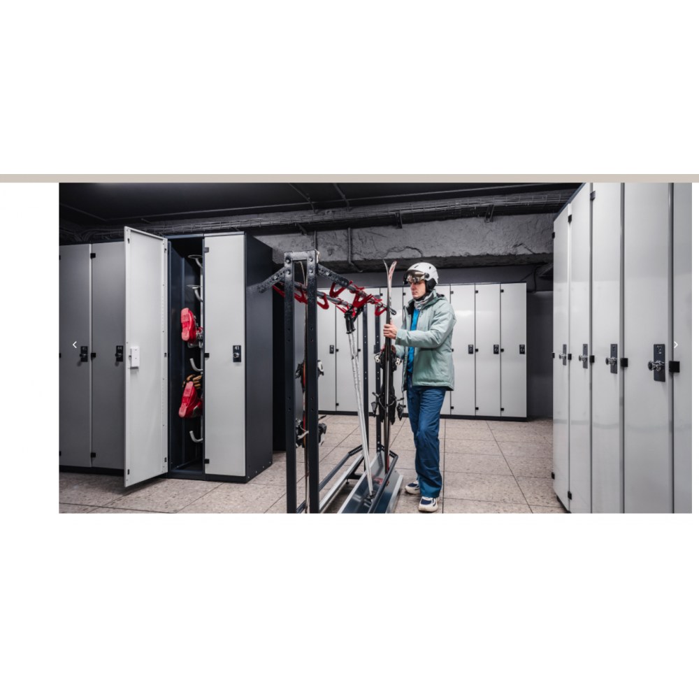 «Локер» — предназначен для хранения и просушивания спортивного инвентаря, горной обуви, шлемов, перчаток. Данными шкафами удобно оснащать гостиницы и пункты проката. Легкость в использовании, является преимуществом  данного шкафа, так как установлены заводские настойки температуры и времени. Шкаф поставляется в комплектации с  электронным замком-ручкой, такой тип замка надежный и удобный в использовании, для открытия достаточно приложить карту от гостиничного номера,  или браслет.