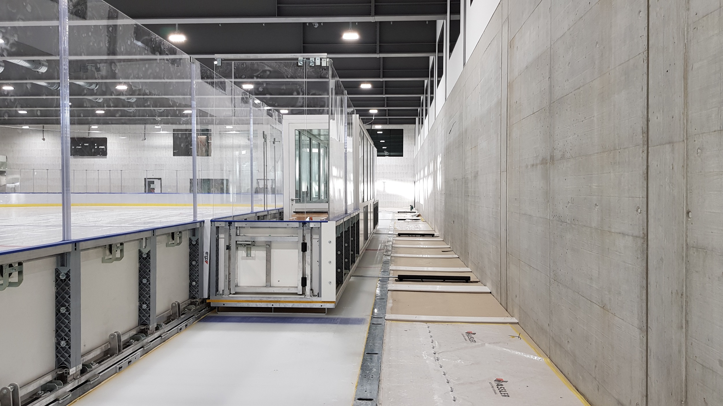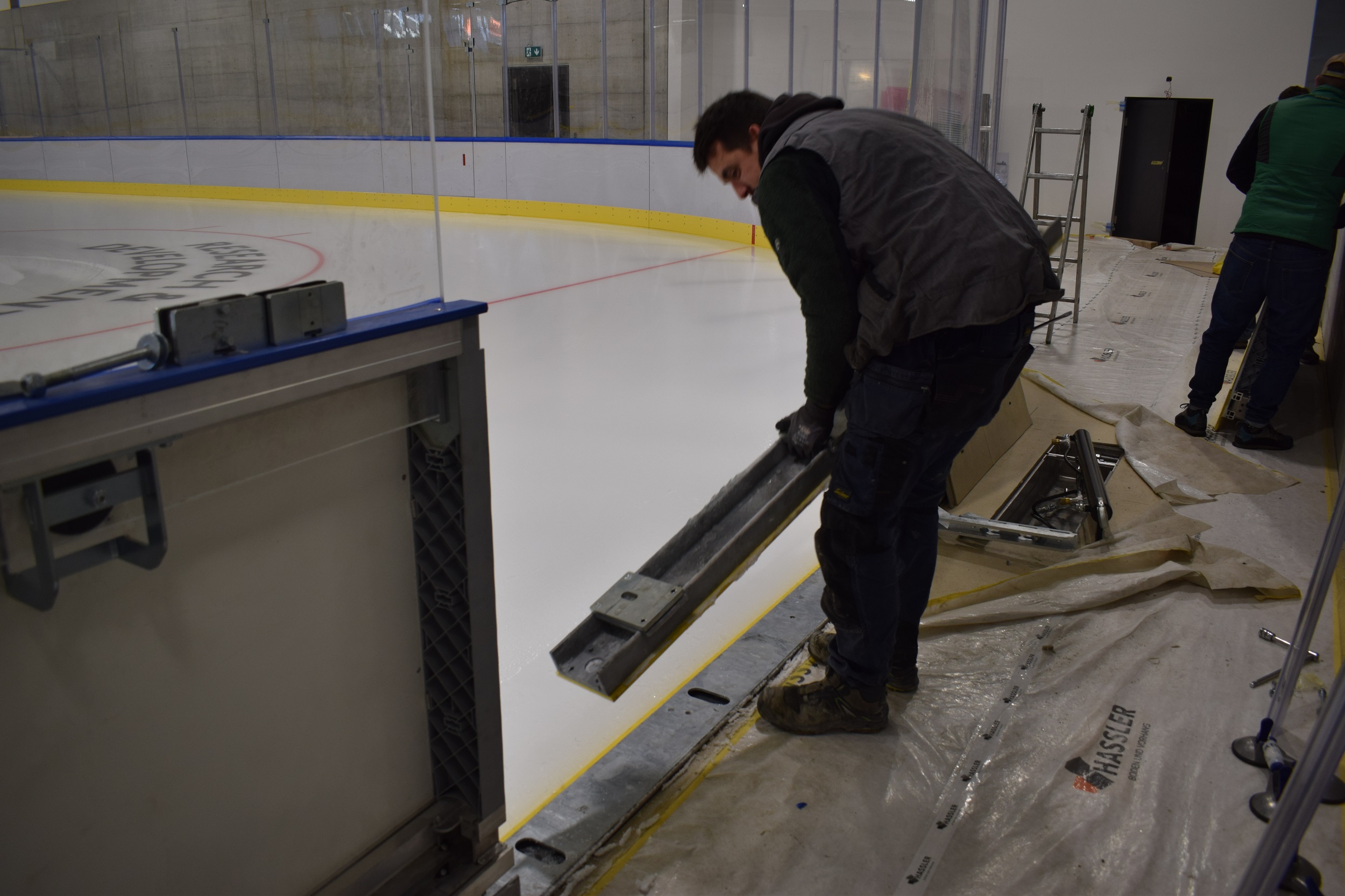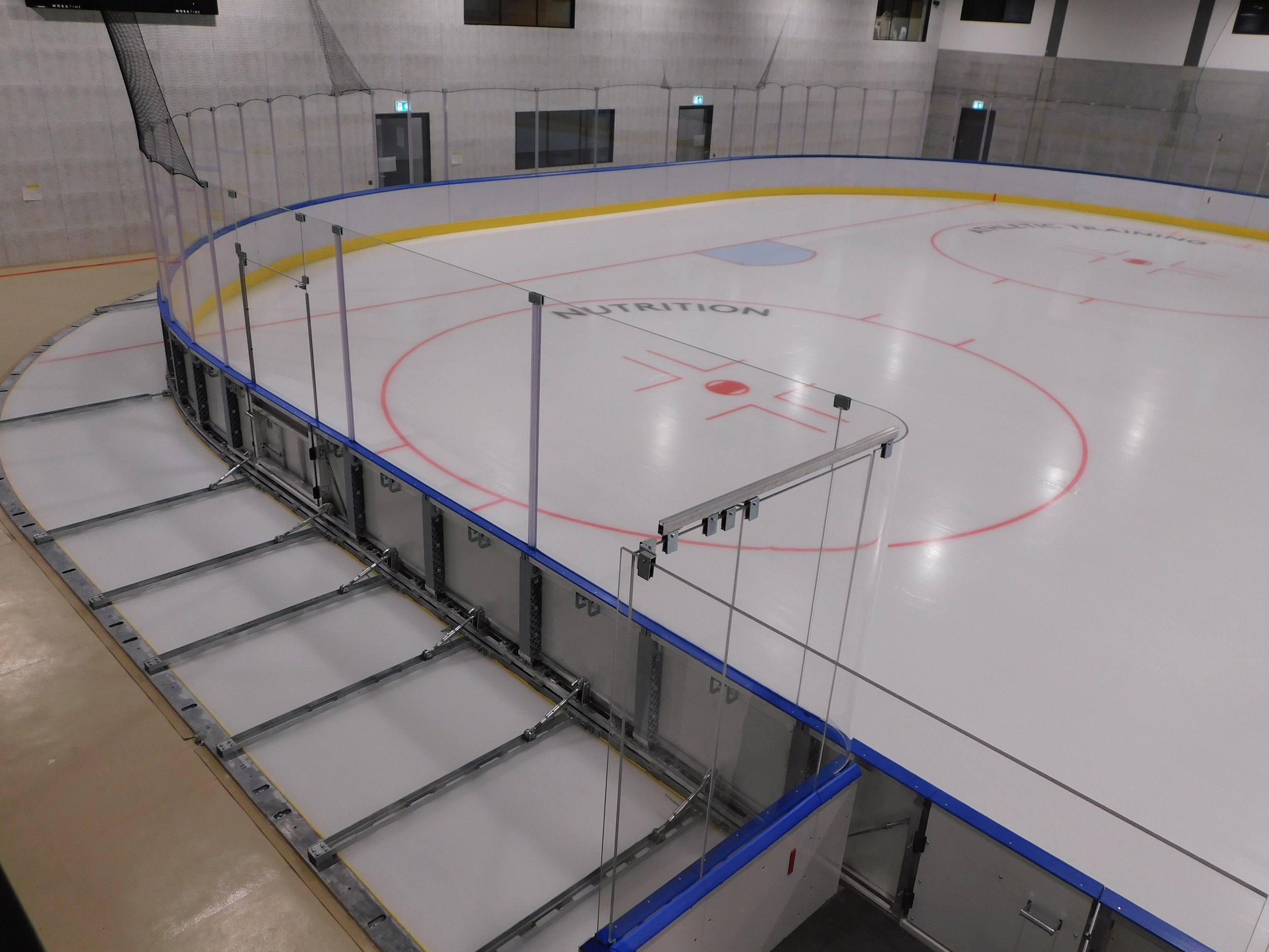 QuickAdapt System для быстрого изменения размеров ледового поля с использованием механической силы.  При данной системе используются специально разработанные закладные с двойной пластиной.  Верхняя пластина выступает над поверхностью льда и при установки различных размеров площадки открепляется от нижней пластины и все элементы борта, скользя по льду перемещаются и устанавливаются в нужном месте. Секции борта закрепляются специальными распорками.