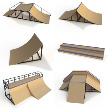 По желанию заказчика в скейтпарках могут присутствовать фигуры для начинающих, а также фигуры и элементы для уверенно катающихся.